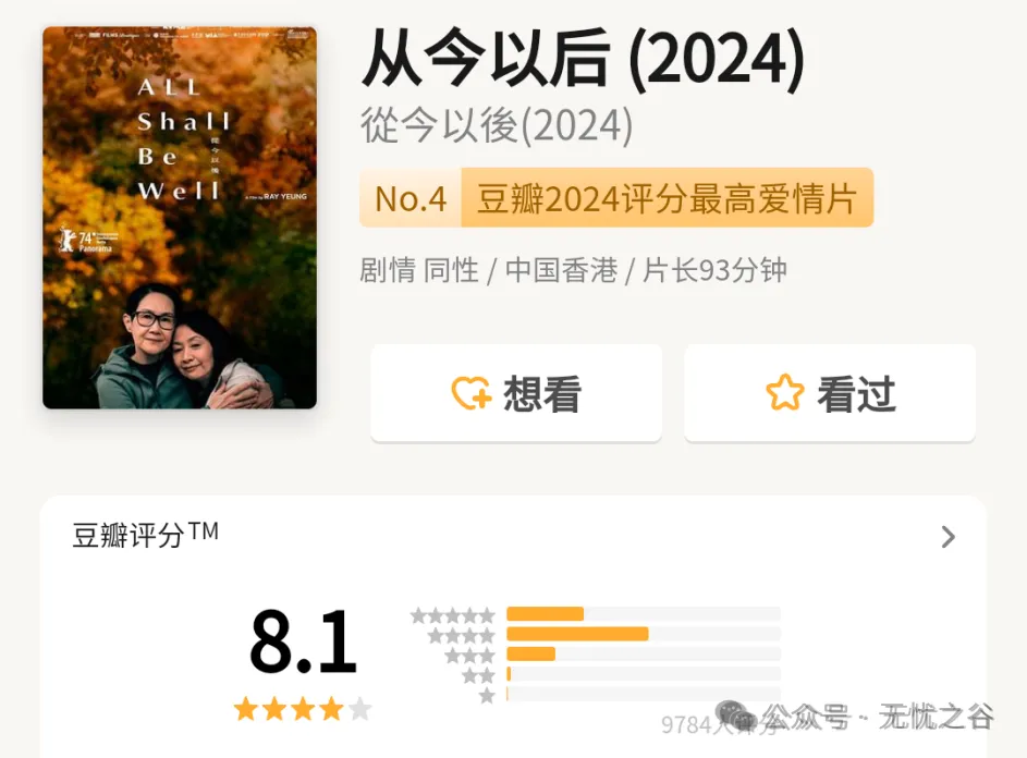 40《从今以后》平淡细腻,娓娓道来。一对暮年姐妹已朝夕相伴四十年,一人突然离世,另一半不仅要面对孤独余生,还要面对爱侣家庭成员的财产利益争夺,陷入法理情的多方周旋。两位女主日常生活情节短暂,最动人的是通过侄子口讲述的Pat曾经对Angie作出的承诺。Angie面对电子屏幕上草拟的遗嘱逐字确认、泪盈于眶,以及Pat对Angie说在遇到你之前觉得自己没有家人。美好的过往让Angie作出最后的决定,现实生活遍体鳞伤,还好爱可以抚平伤口,化为盔甲。