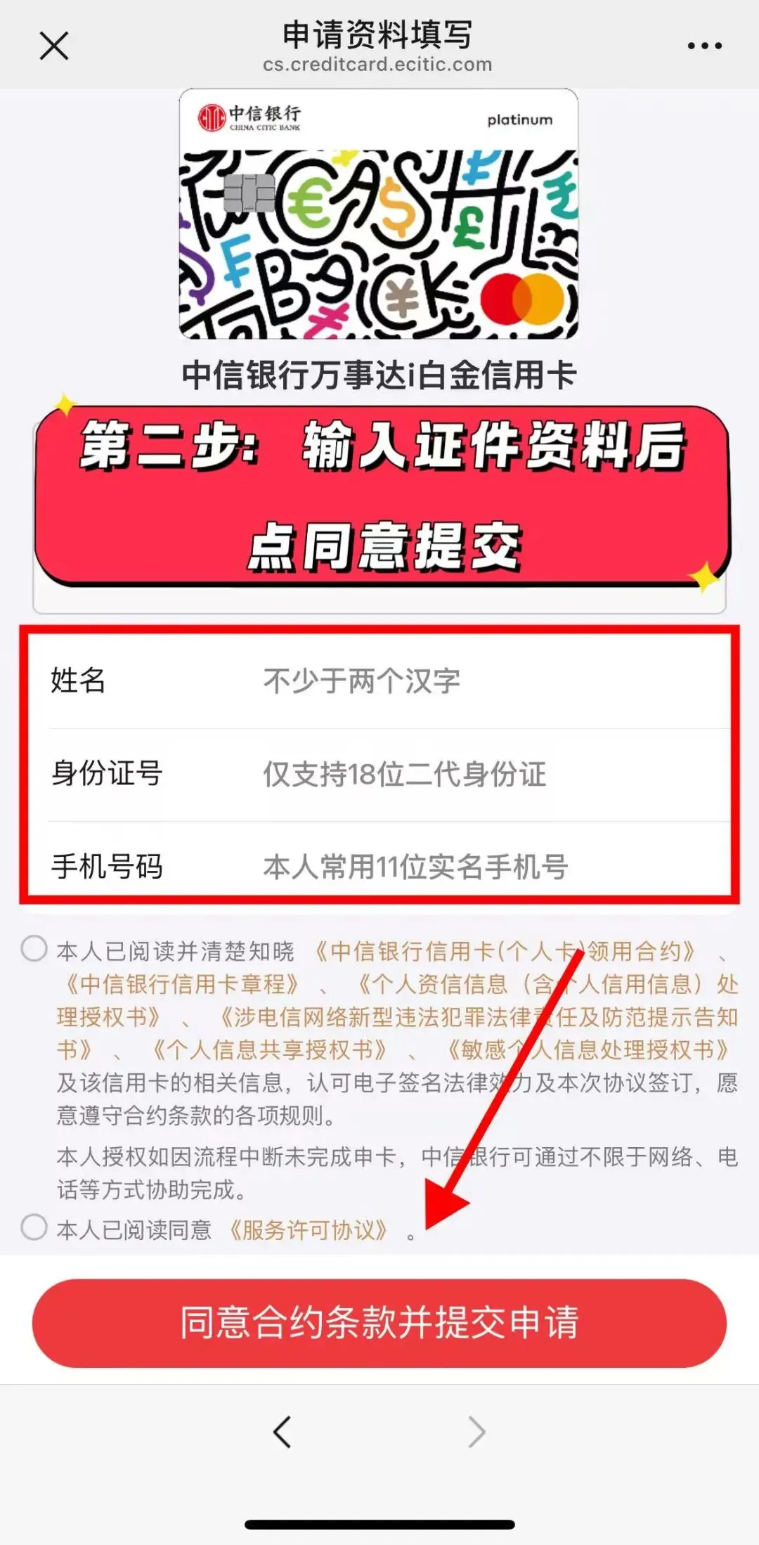 第二步:输入证件资料提交
