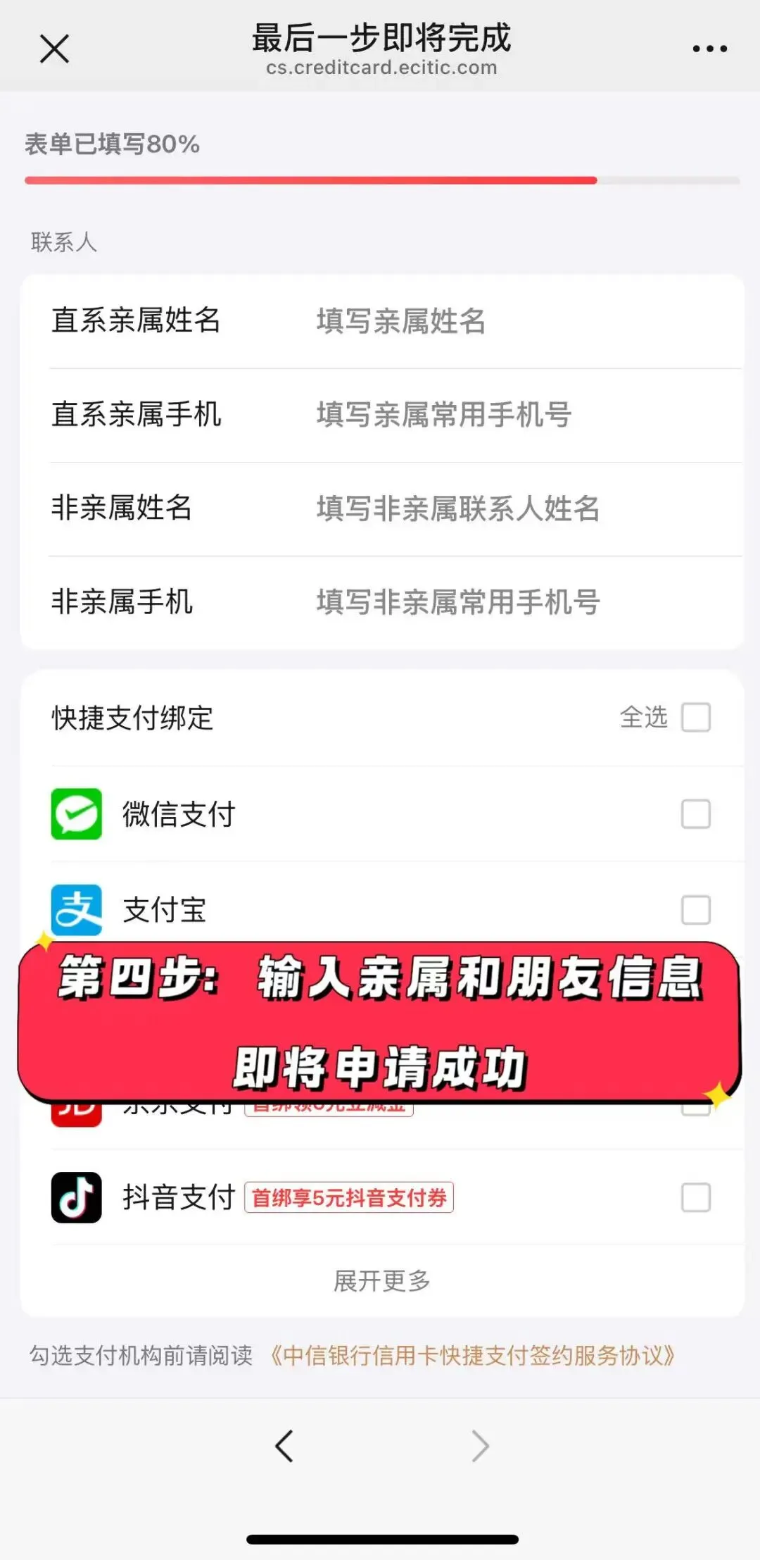 第四步:输入亲属和朋友信息申请成功
