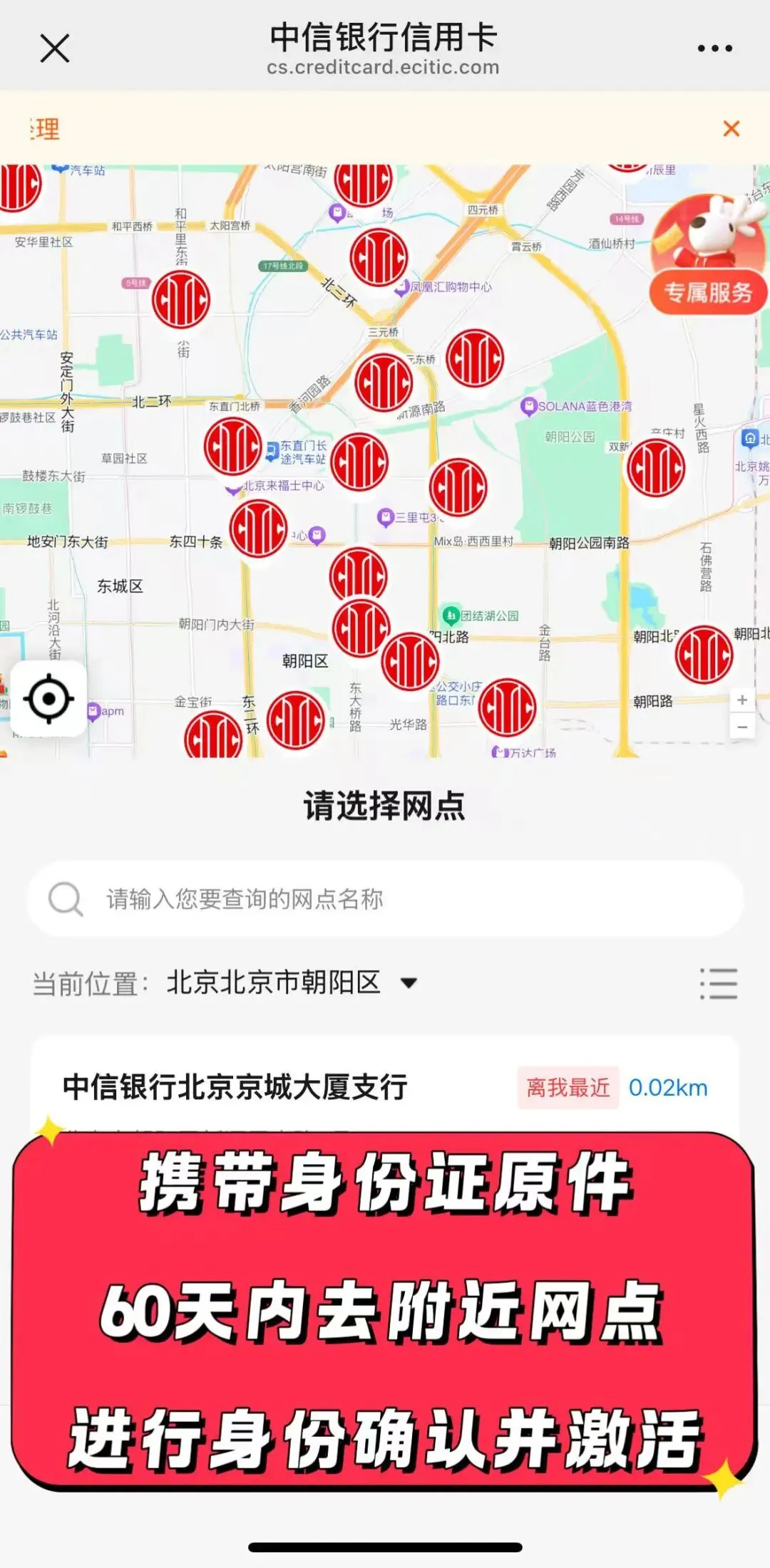 2、如地址选的时候没有,代表所在地市级无中信银行网点,可先写个可以选的地址,审核通过后,再打客服修改地址。