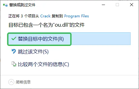 20、将补丁文件粘贴至刚才打开的软件安装目录位置下替换。