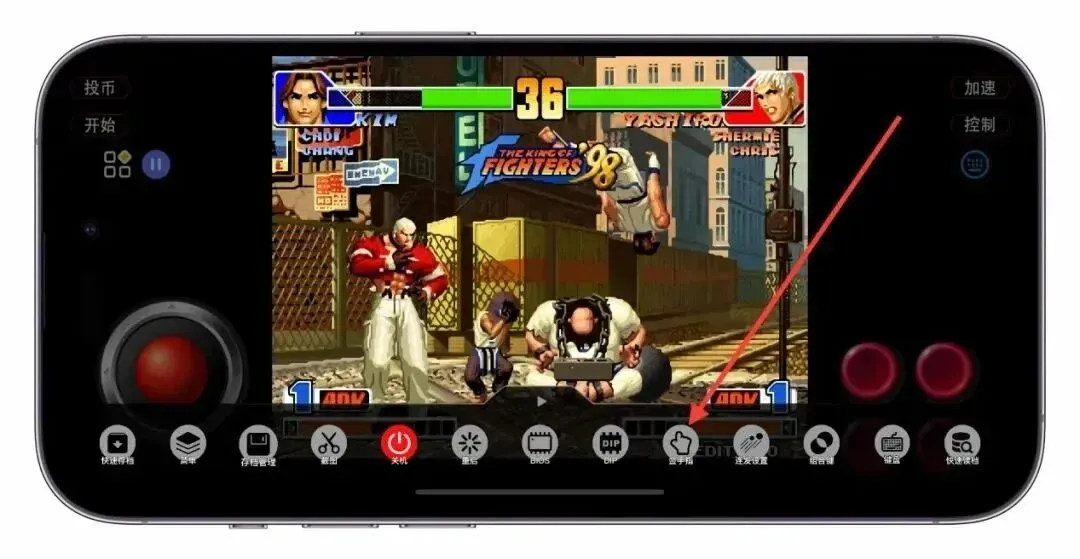 1、点击游戏,即可开始玩耍,部分游戏直接给出金手指,以拳皇例。点击设置选项在界面左侧位置