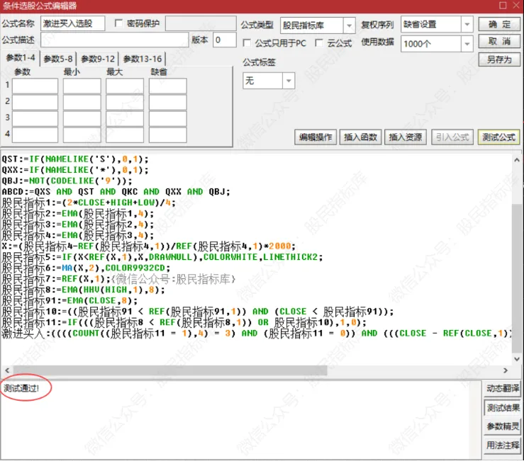激进买入:((((COUNT((股民指标11 = 1),4) = 3) AND (股民指标11 = 0)) AND (((CLOSE – REF(CLOSE,1)) / REF(CLOSE,1)) > 0.085)) * 66) AND ABCD AND TXJ;