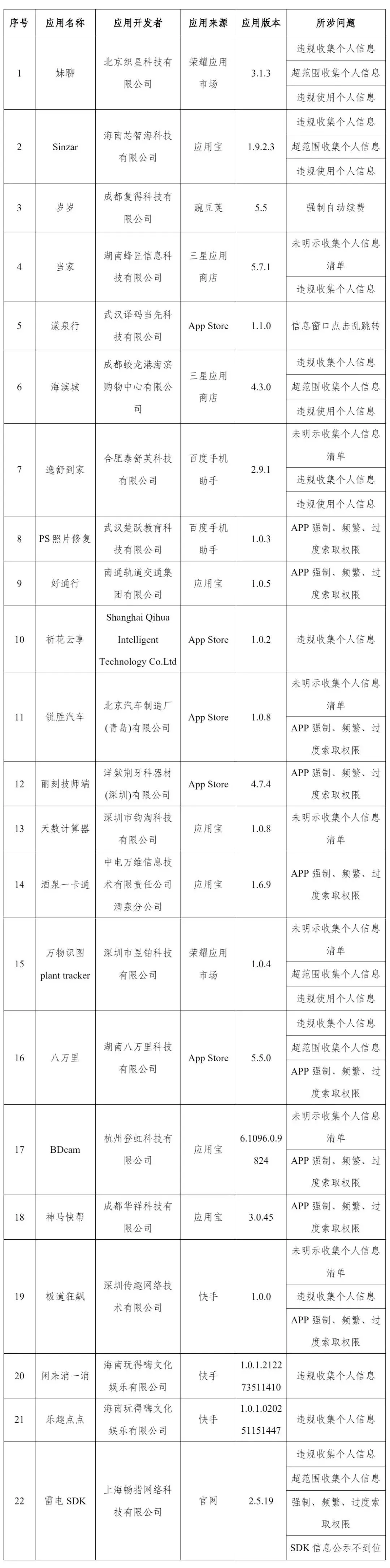 工业和信息化部高度重视用户权益保护工作,依据《个人信息保护法》《网络安全法》《电信条例》《电信和互联网用户个人信息保护规定》等法律法规,持续整治APP侵害用户权益的违规行为。近期,我部组织第三方检测机构进行抽查,共发现22款APP及SDK存在侵害用户权益行为(详见附件),现予以通报。