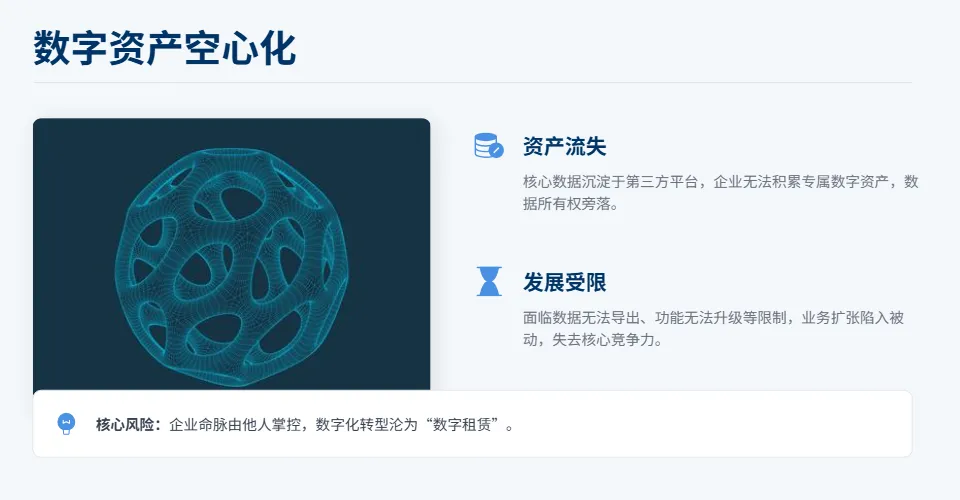 ► 怕没家底:长期用SaaS,客户、交易、运营方法这些核心资源都存在别人平台上,自己啥都留不下。