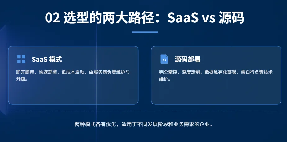 ► 选型建议:立刻切换为源码系统,这是企业掌握业务主动权的关键节点。
