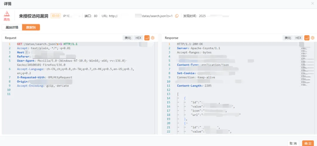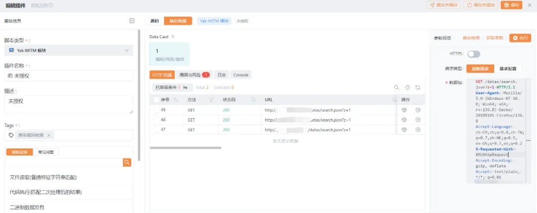 Yakit未授权被动检测插件 前言 在后台的测试中,可能大部分接口都已经做了严格的鉴权,但也存在新增接口或遗漏接口未做鉴权 在测试未授权时,总是一个一个数据包去掉鉴权查看是否存在,使用已公开的插件效果并不理想,于是就写了这个未授权检测的插件 该插件建议在已登录、已获取认证的情况下再开启,以下是使用该插件的方法 演示效果 导入方法 方法一: 插件ID导入: 803580b7-f6ac-4862-87aa-be535b909c11 复制ID启动yakit 导入后即可在我的或本地插件中查看 方法二: 后台回复:20251209获取源码,手动调试添加