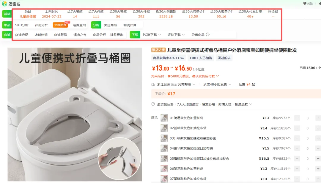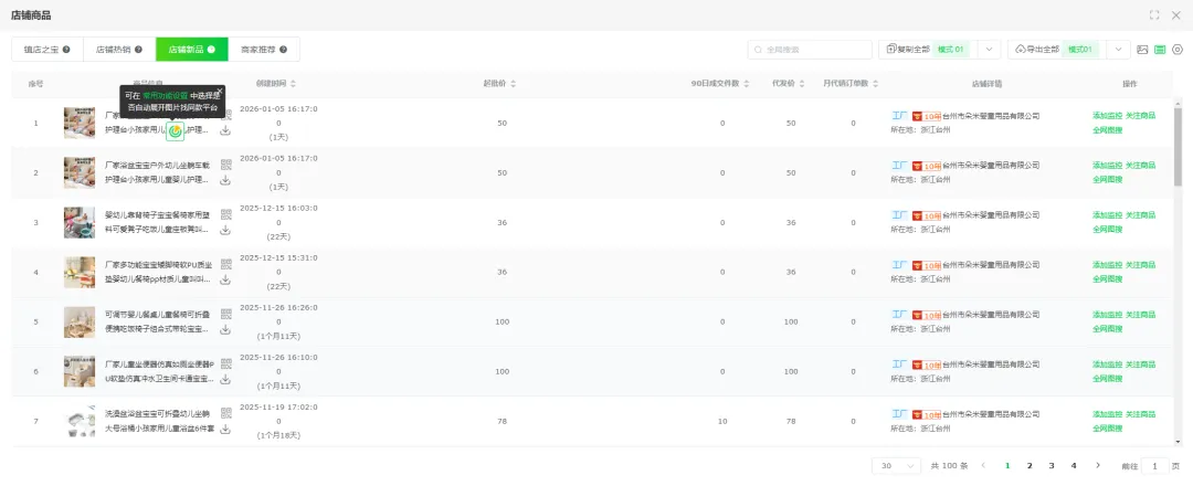 在选品方面店雷达目前是我用过感受最好的插件,它做的更人性化,它还具备选品功能、监控商品和监控店铺等功能。