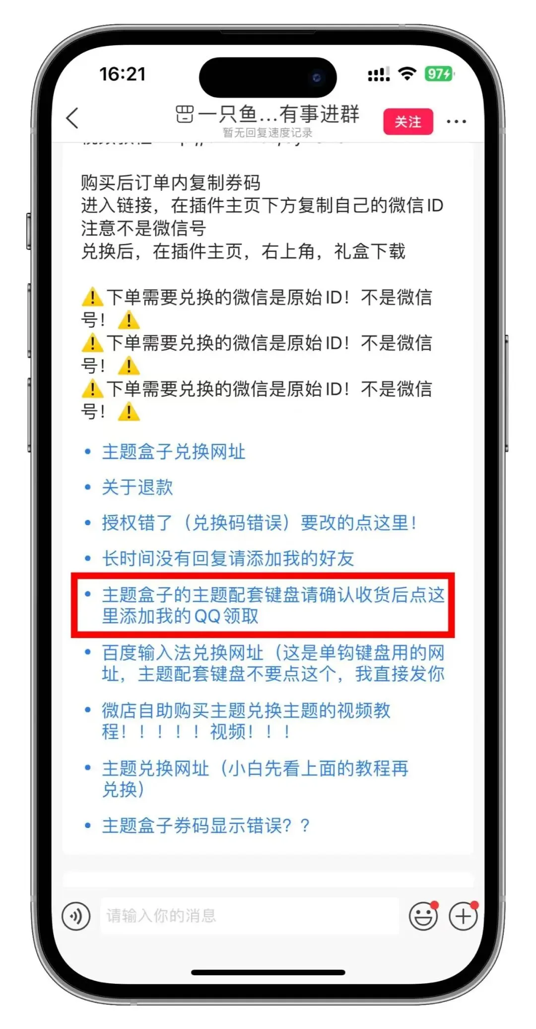 2、主题兑换完成以后,复制下面的百度键盘皮肤链接,即可得到主题赠送的键盘