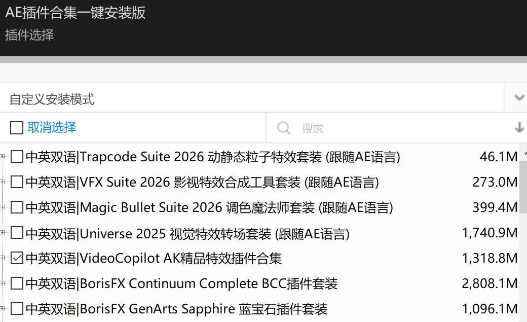 (不建议全部安装,AE每次启动都会读取全部插件,容易造成AE启动缓慢)