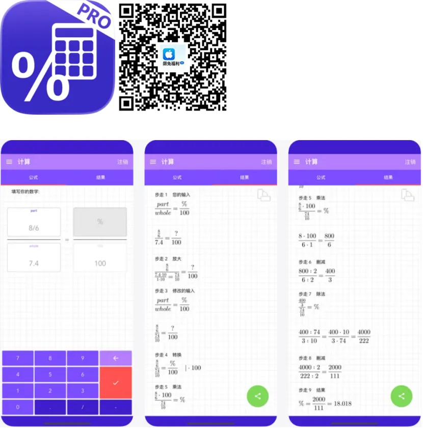 简介:百分比计算轻松搞定!只需输入三个变量中的两个,应用即可迅速计算并保存至历史记录。详细解决方案一目了然,支持分数和小数输入,常数也能轻松处理。
