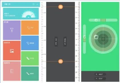 它的功能包括:手电筒、尺子、水平仪、量角器、指南针、噪音计、挂画校准、测量距离;它的每个功能都是实用并且好用,使用场景丰富。
