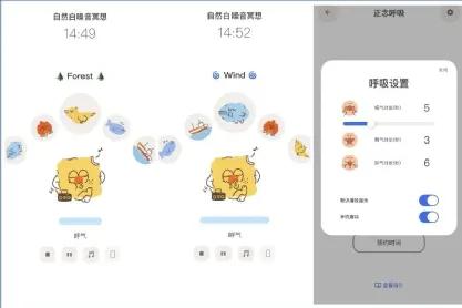 每种冥想的动画不一样、背景音乐也不一样,它支持设置每次冥想的吸气时长、屏气时长、呼气时长。