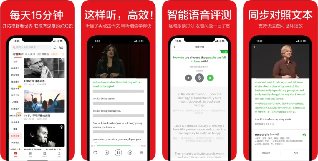 一款随时随地能增长学识的软件! 它里边收录了海量的英文演讲视频,有名气很大的TED,也有不少名人的演讲片段。