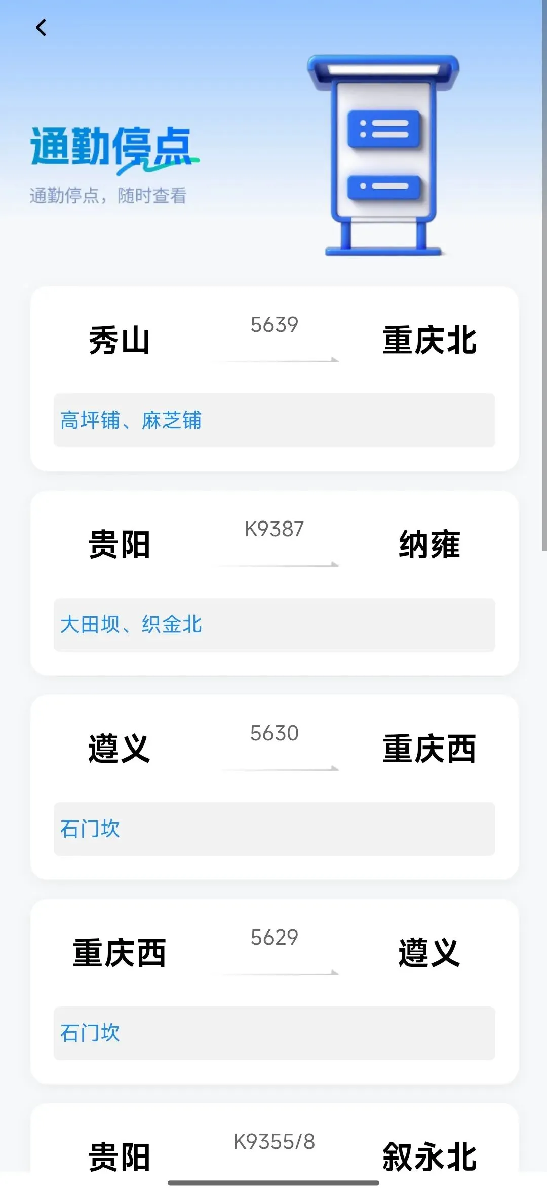 新的通勤列车、通勤停点、公交站段展示页面,方便查看。