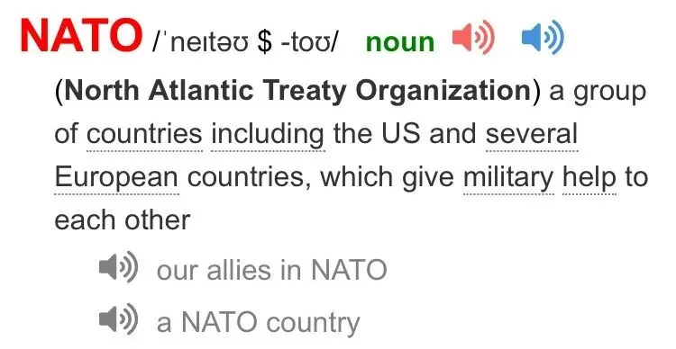 举个例子,NATO的全称是North Atlantic Treaty Organization,但是它不读成N-A-T-O,而是/ˈneɪtəʊ/,因为这几个字母组合在一起刚好可以读出来。