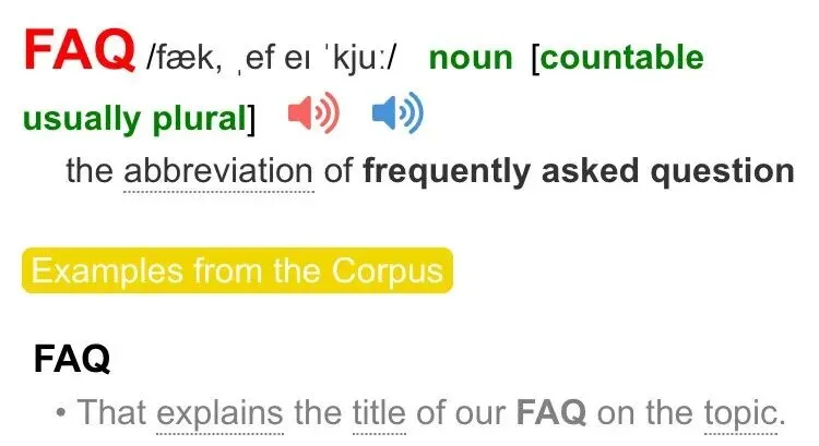 比如我们经常见到的FAQ (Frequently Asked Question),它可以读成F-A-Q,也可以读成/fæk/,并且第二种读法在美式英语里面比较常见。