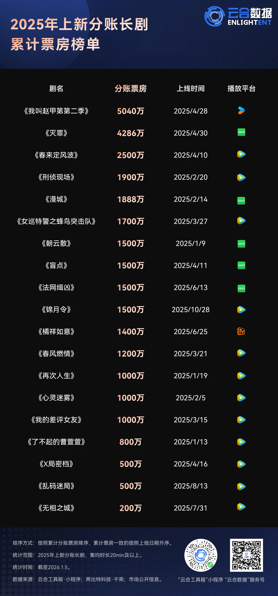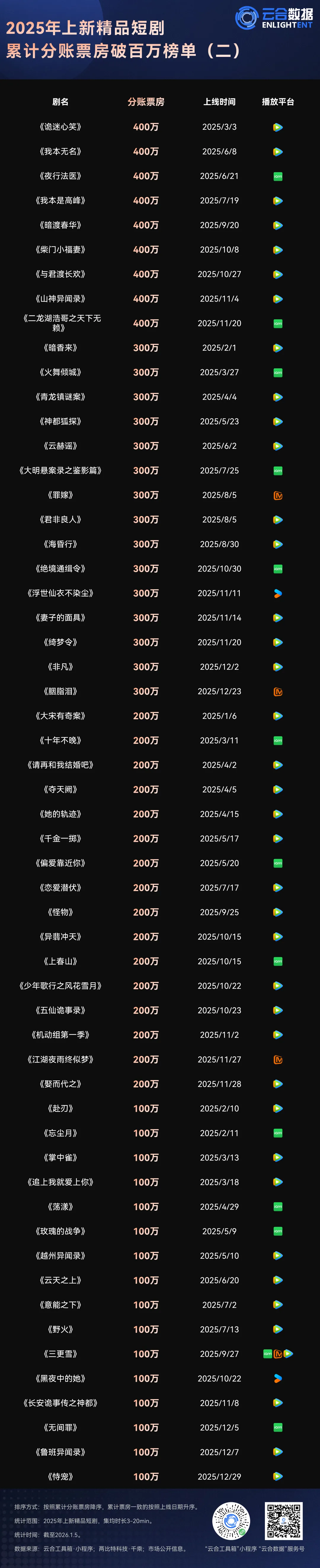 票房榜 | 2025年分账长剧、精品短剧、分账电影