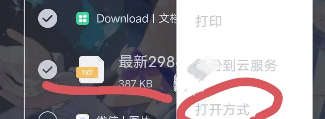2.1.1 下载好的规则txt文件用文件管理器打开>长按选中该文件>选择用html查看程序打开>长按选中一段文字>选择全选,然后选择复制