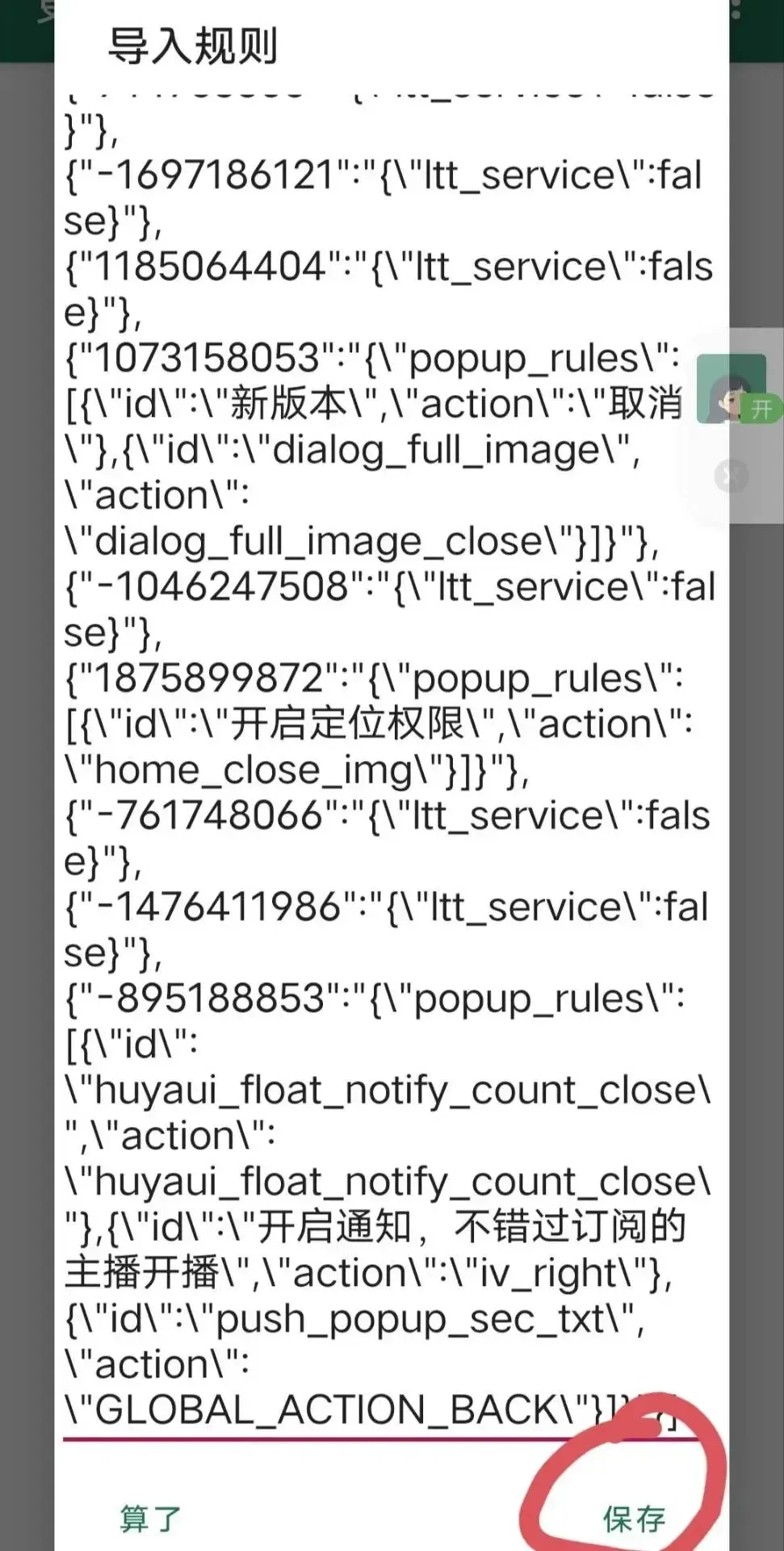 2.4 黏贴第一步复制好的规则>右下角保存>出现导入成功提示
