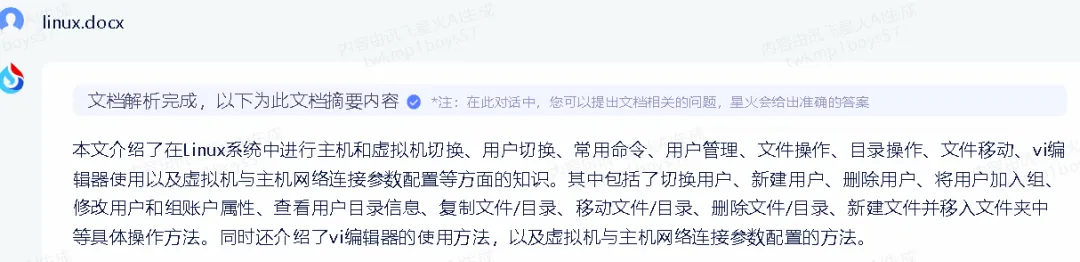 2.4.1文档问答:上传文档(pdf、doc、docx、txt、md),自动提炼出摘要,星火会根据文档内容回答你的其他问题,
