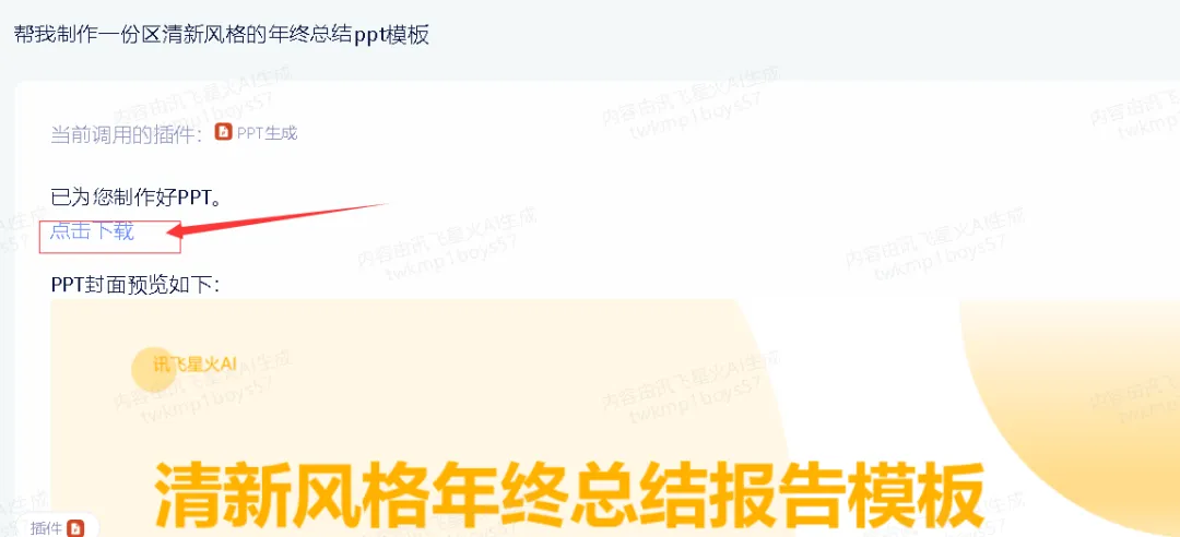 选择ppt插件之后,输入自己需要的主题即可帮我们快速生成模板,咱只需下载下来稍作修改即可。