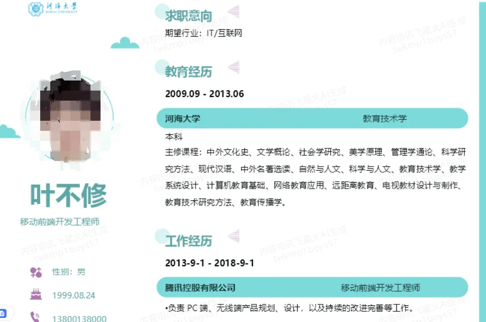只需提供很少的信息,即可快速生成一份简历模板!咱只需修改以下就能用了
