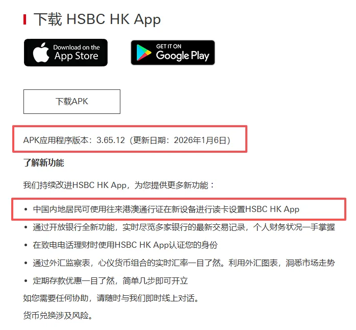汇丰银行应用程序版本:3.65.12(更新日期:2026年1月6日)