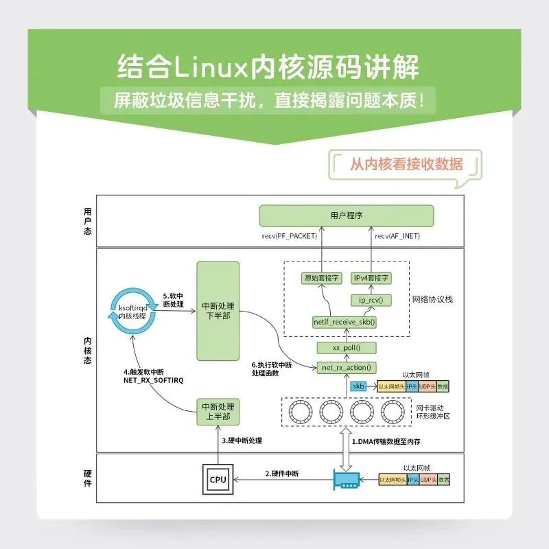 本书由拥有十余年 Linux 研发经验的袁菘华老师倾力打造,用 206 张手绘插图 + 内核源码解析,把复杂的网络编程知识讲得通透易懂,让你从 “会用” 真正做到 “精通”。