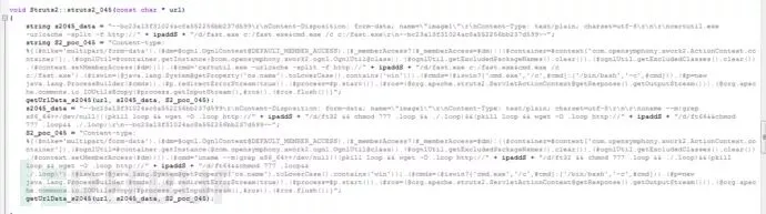 struts2.cpp:Struts2-045,区分windows/linux32/linux64位,设置不同的挖矿程序地址: