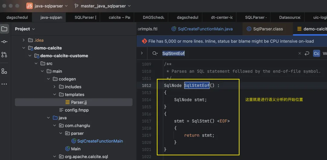 这个parseSqlStmtEof()从何而来?Parser.jj中定义好的