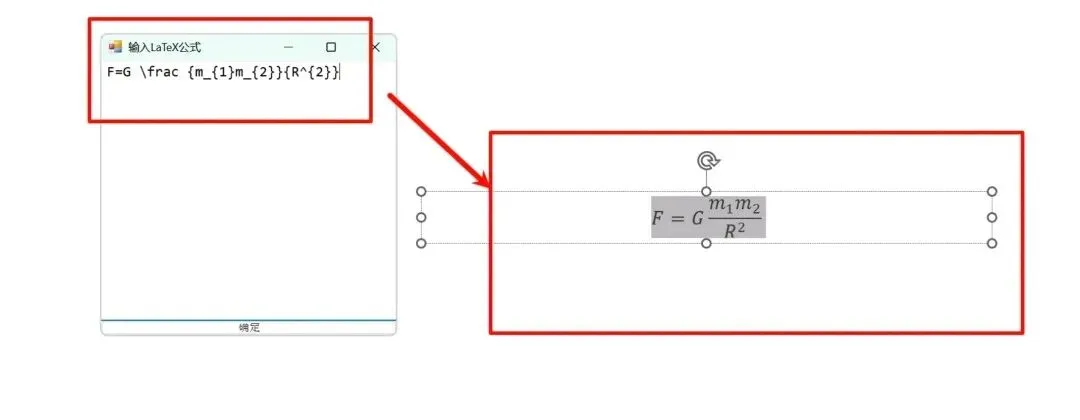 4. 一键插入复杂数学公式,支持LaTeX文字和LaTeX SVG格式,比如输入公式 F=G \frac {m_{1}m_(2}}{R^(2}} ,很快就能生成规范公式,不用自己慢慢画;