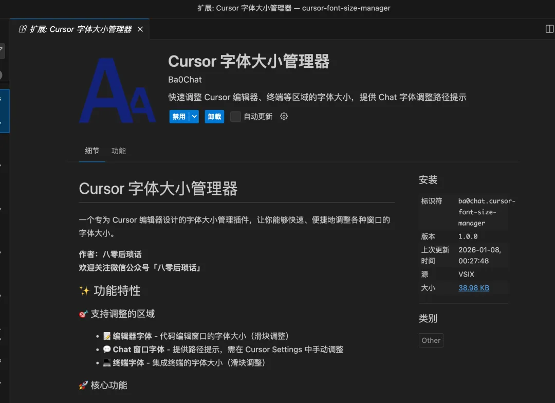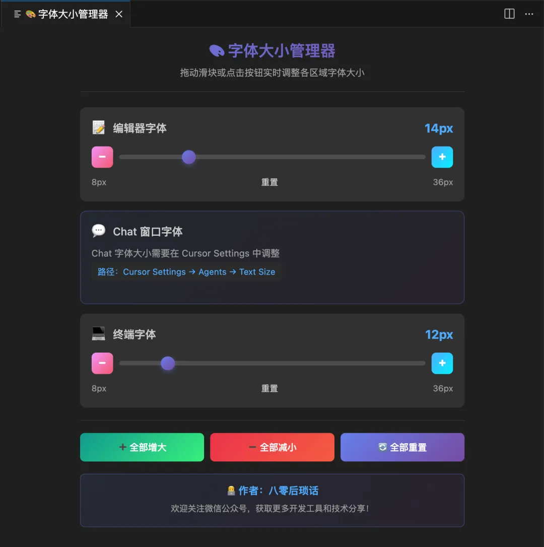 干货:一枚宝藏插件,Cursor字体大小随心换