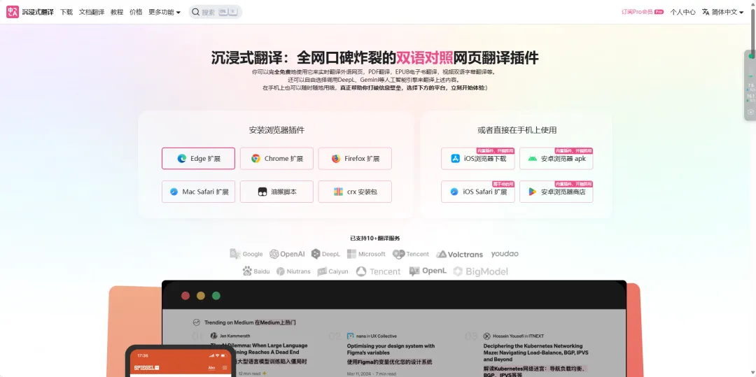 沉浸式翻译:全网口碑炸裂的双语对照网页翻译插件