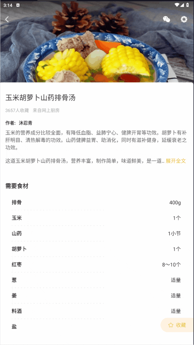 它不仅整理了超丰富的早餐、午餐、晚餐菜谱,不管是日常简餐还是家庭小聚,打开软件翻一翻,就能找到合适的菜品灵感,再也不用对着冰箱发呆!