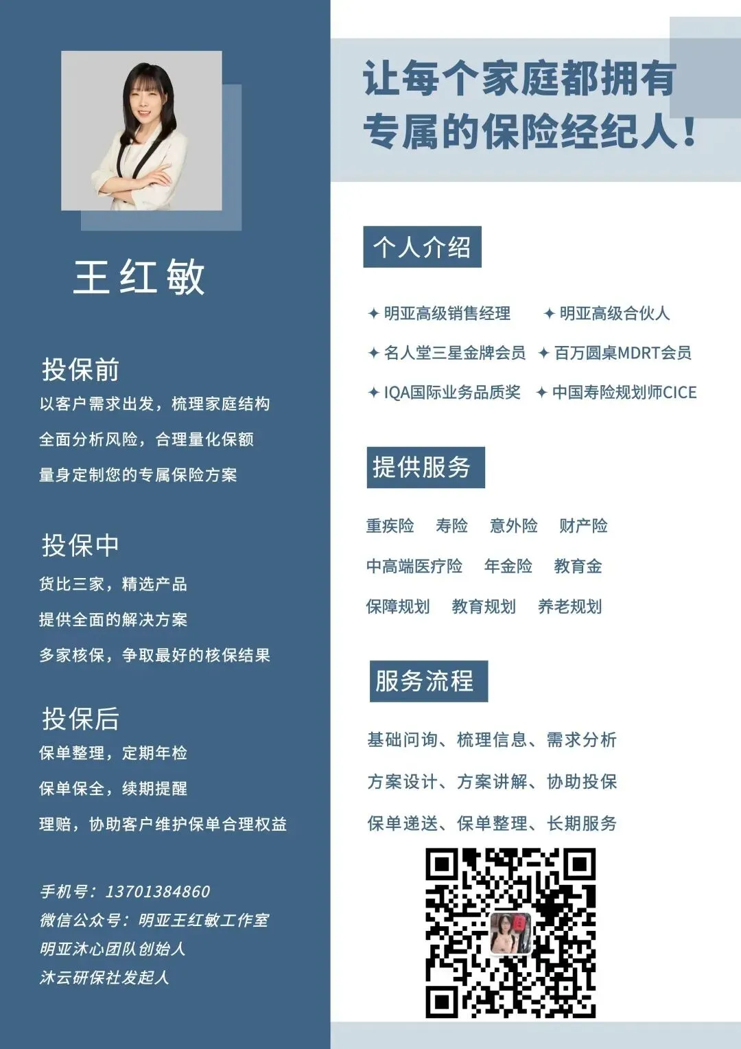 ◆ 明亚高级销售经理,明亚高峰会会员,明亚沐心团队创始人,沐云研保社发起人。希望获得高性价比保险方案加微,或想成为沐心团队合伙人,欢迎随时来电,时时在线中。
