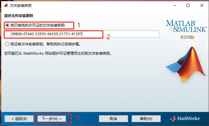 第七步:选择【我已有我的许可证的文件安装密钥】,输入安装密钥【09806-07443-53955-64350-21751-41297】,点击【下一步】。