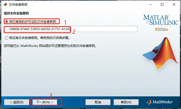 第七步:选择【我已有我的许可证的文件安装密钥】,复制以下标红密钥并粘贴输入【09806-07443-53955-64350-21751-41297】,点击【下一步】。