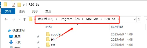 第十六步:手动打开软件安装目录(位置参考第八步),一定要打开到【R2016a】文件夹。