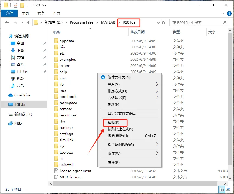 第十七步:将刚刚复制的文件,粘贴在此处【R2016a文件夹下】。
