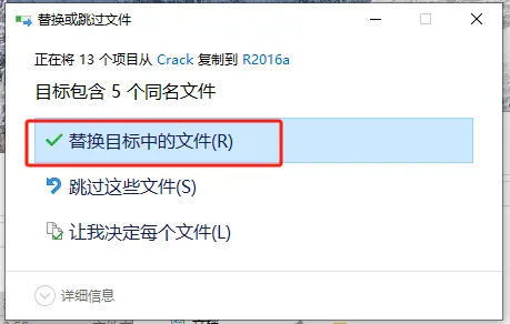 第十八步:选择【替换目标中的文件】。