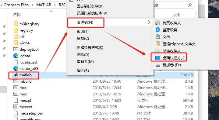 第二十步:选中【matlab】右击,【发送到】-【桌面快捷方式】。