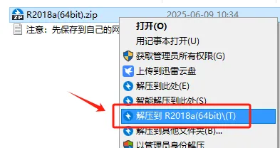第二步:将下载好的文件选中,右击,解压到……
