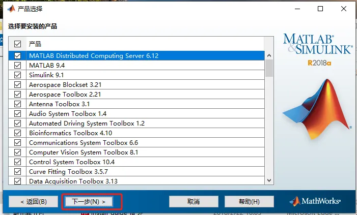 第九步:根据需求勾选产品,其中【MATLAB Distributed……】必须勾选,点击【下一步】。