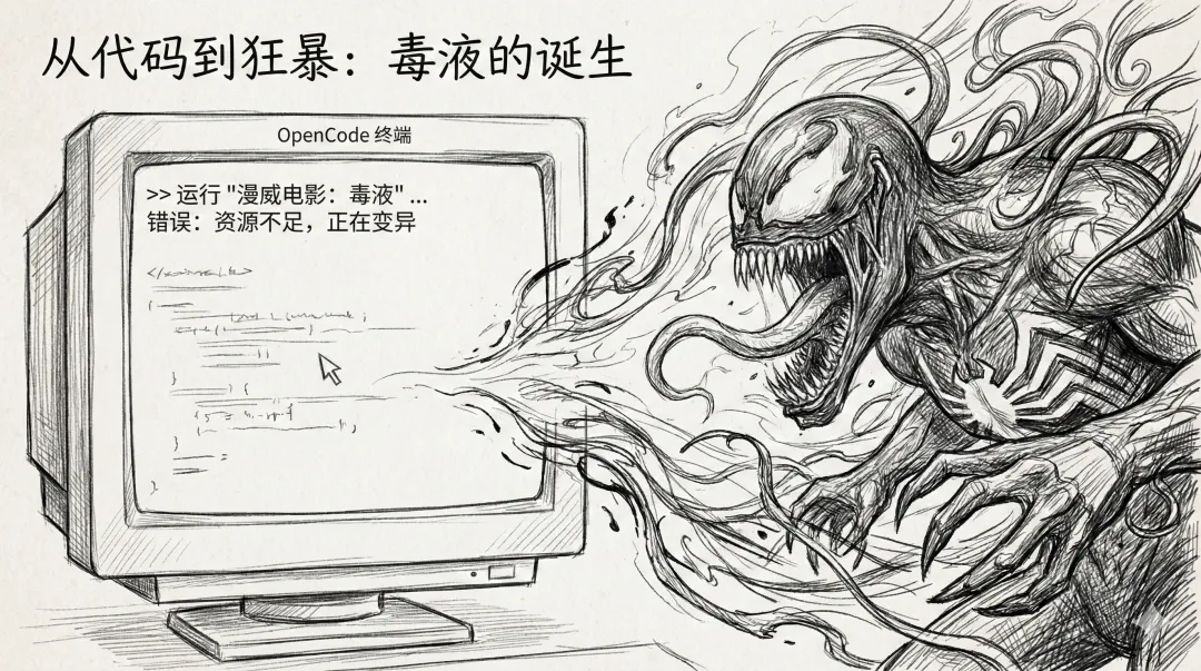 OpenCode 是那个老实巴交的埃迪,而 Oh-My-OpenCode 就是那团疯狂的毒液。