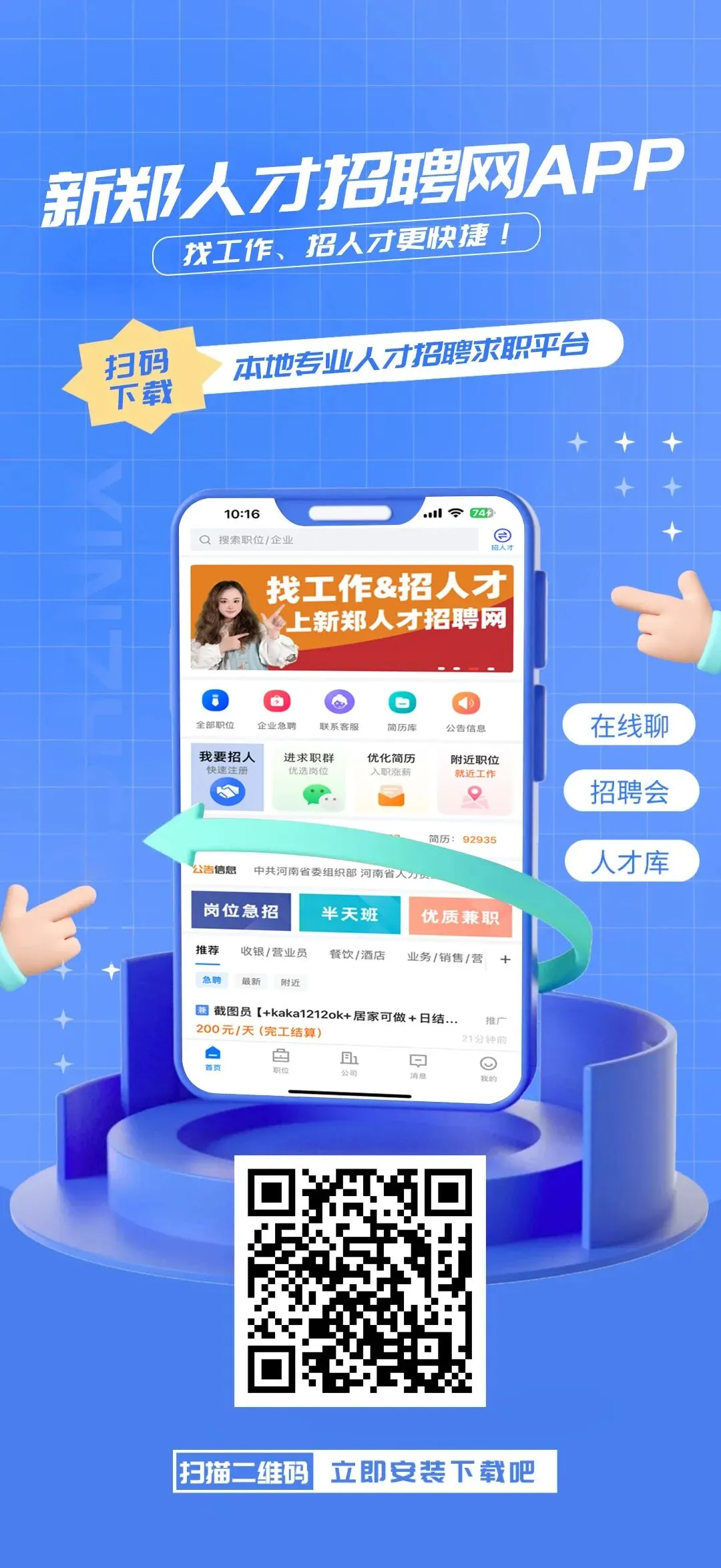 找工作、招人才就用新郑人才招聘网APP!