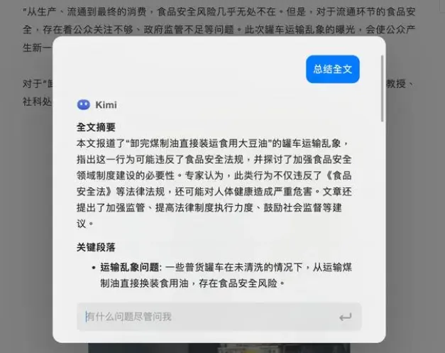 安装后,你只需在浏览器中选取文字或点击悬浮按钮,就能得到Kimi的智能解答和总结。