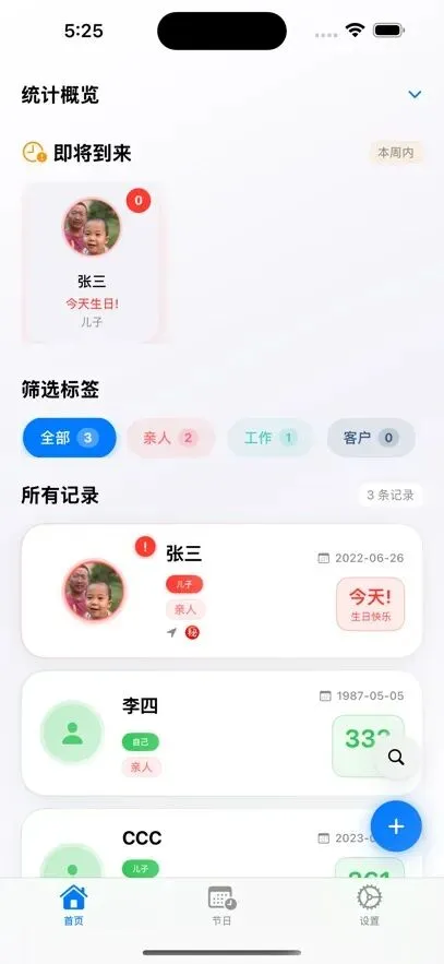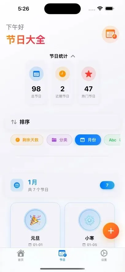 软件介绍:[节衍] 是一款简洁高效、功能强大的智能提醒应用,致力于成为你生活中不可或缺的贴心助手。无论你是容易遗忘亲友生日的 “大忙人”,还是渴望提前规划假期的 “旅行达人”,亦或是想要记录特殊日子的 “生活仪式家”,这款 APP 都能完美满足你的需求。核心功能:生日提醒:支持手动添加或同步通讯录,轻松记录亲友生日。提前设置提醒时间,可选择短信、弹窗等多种提醒方式,用温暖祝福拉近彼此距离。节假日提醒:自动同步法定节假日、国际节日等信息,提供详细的节日背景介绍。提前知晓放假安排,制定出行计划,不再因临时规划而手忙脚乱。自定义节日:随心创建纪念日、重要事件等专属提醒,无论是结婚纪念日、宠物生日,还是项目截止日,都能一键设置,灵活调整提醒频率,重要时刻不再错过。独特优势:界面简洁:操作简单,轻松上手,无复杂冗余功能,专注提醒体验。智能同步:支持多设备同步,手机、平板、电脑数据实时更新,随时随地查看管理。精准推送:基于智能算法,确保提醒准时送达,不错过每一个重要日子。