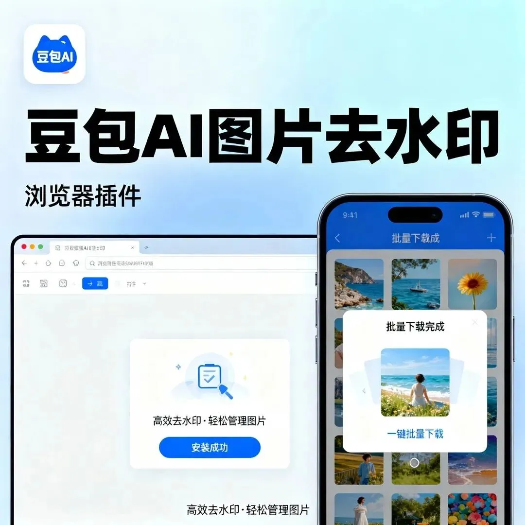 豆包AI图片去水印无水印批量下载浏览器插件,一键下载豆包AI生成的无水印图片工具软件