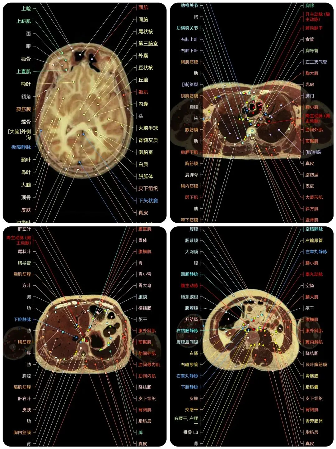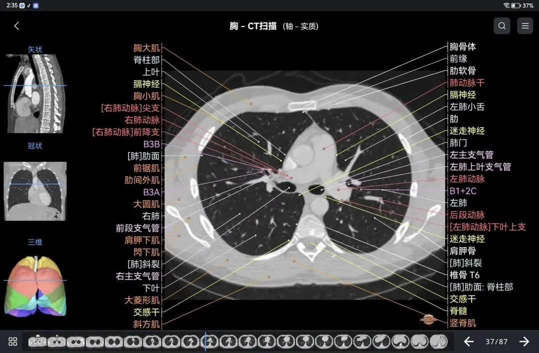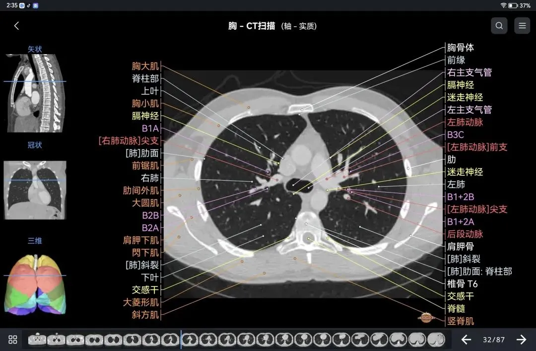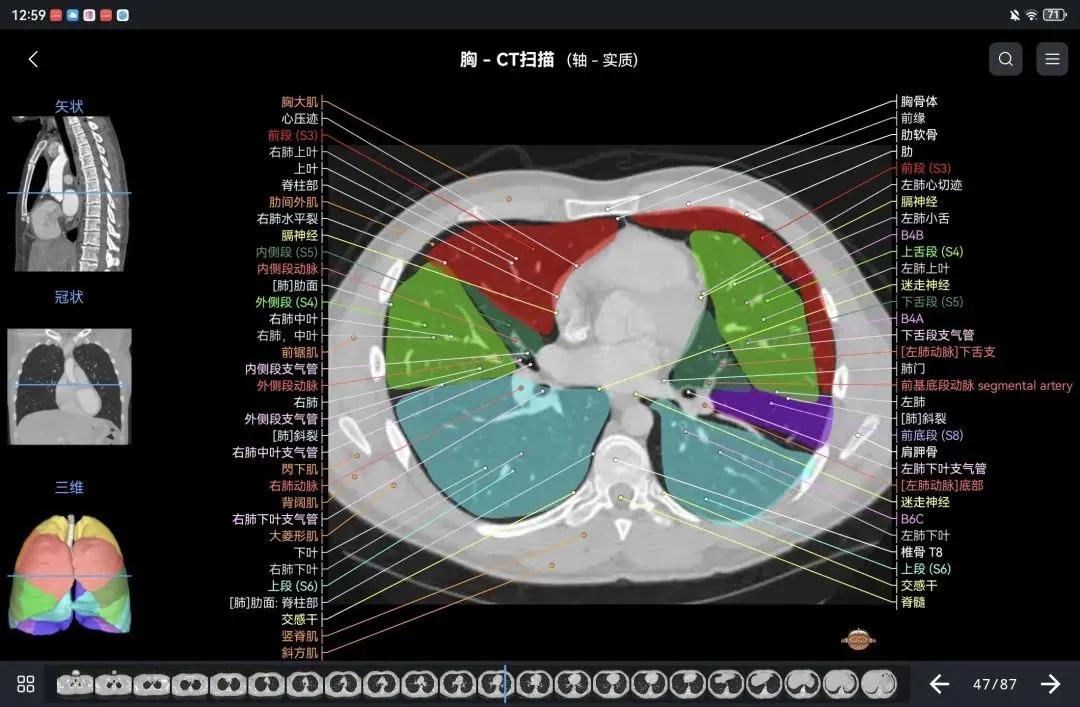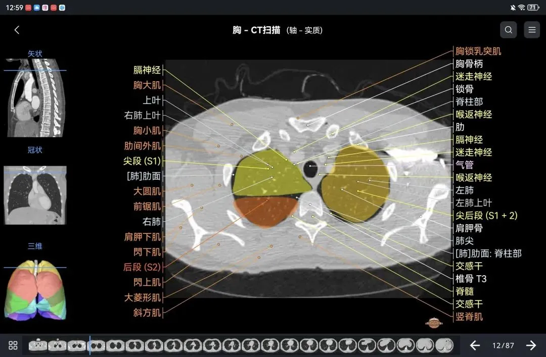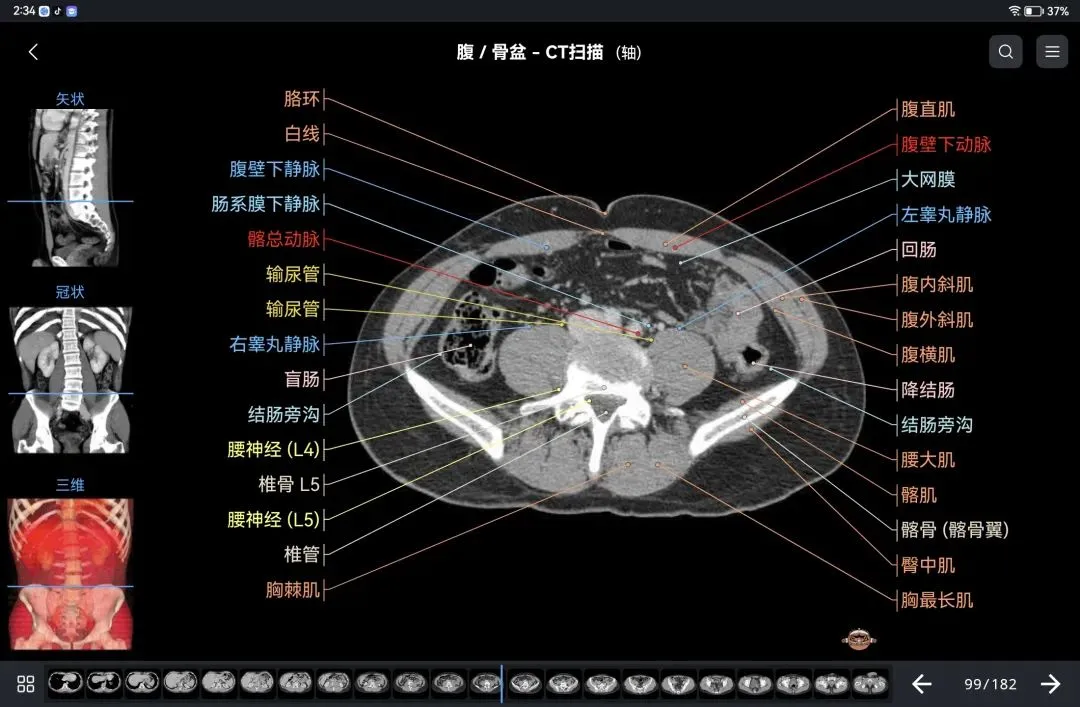 覆盖了X光、CT、MRI、断层大体解剖、核医学、介入造影、医学插图等多个模块,覆盖全身各个系统的影像解剖(正常解剖结构,无病例),其中的解剖结构高达87万个,结构标注超精细,超高清图像,历时两年研发设计完成✅。